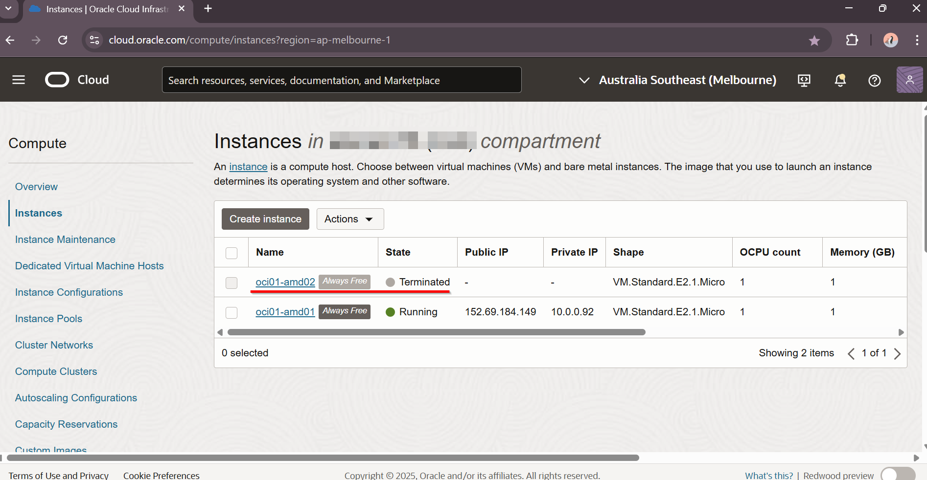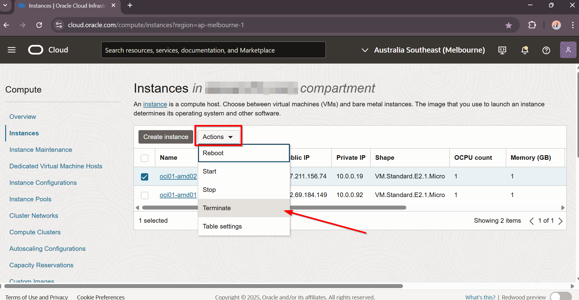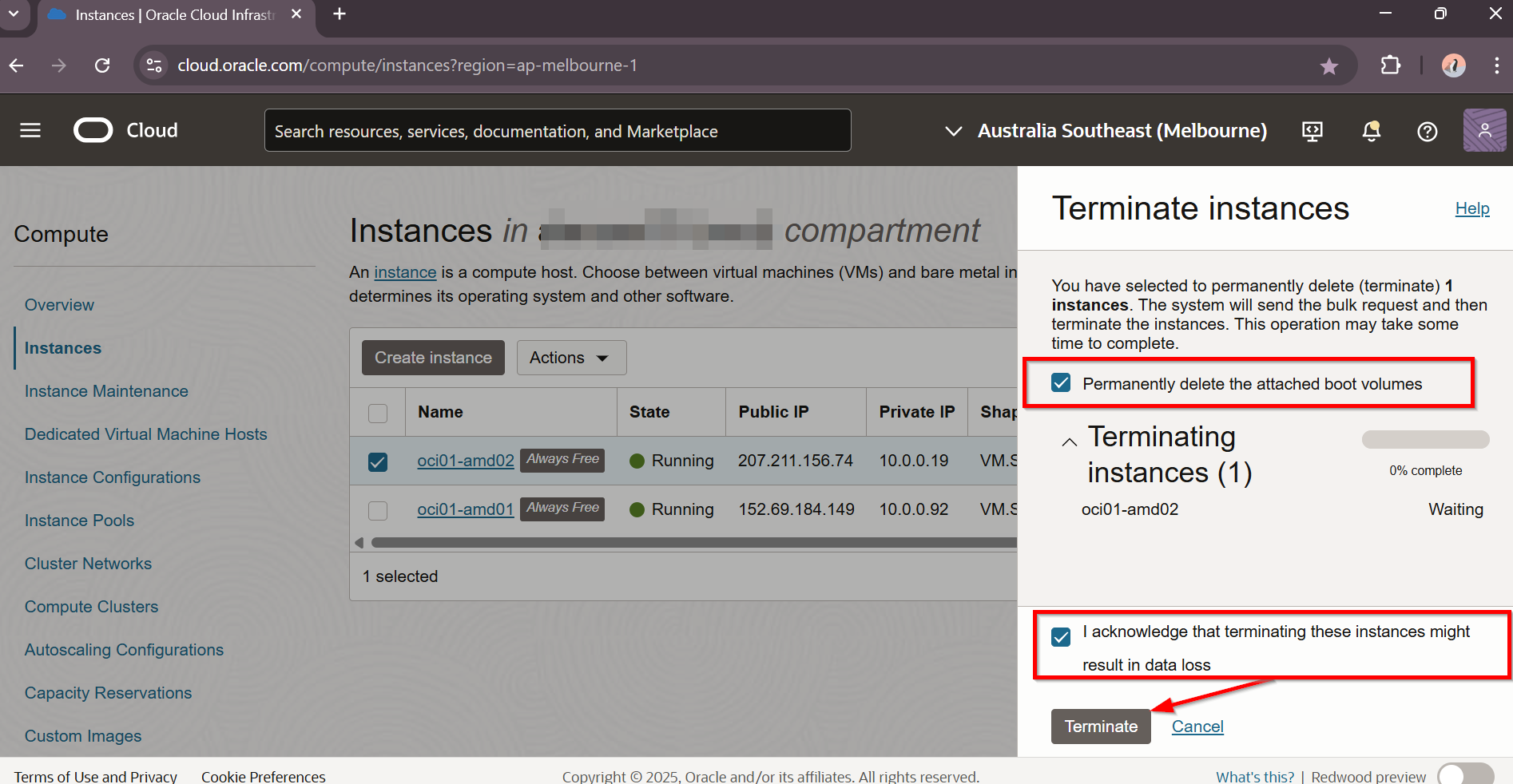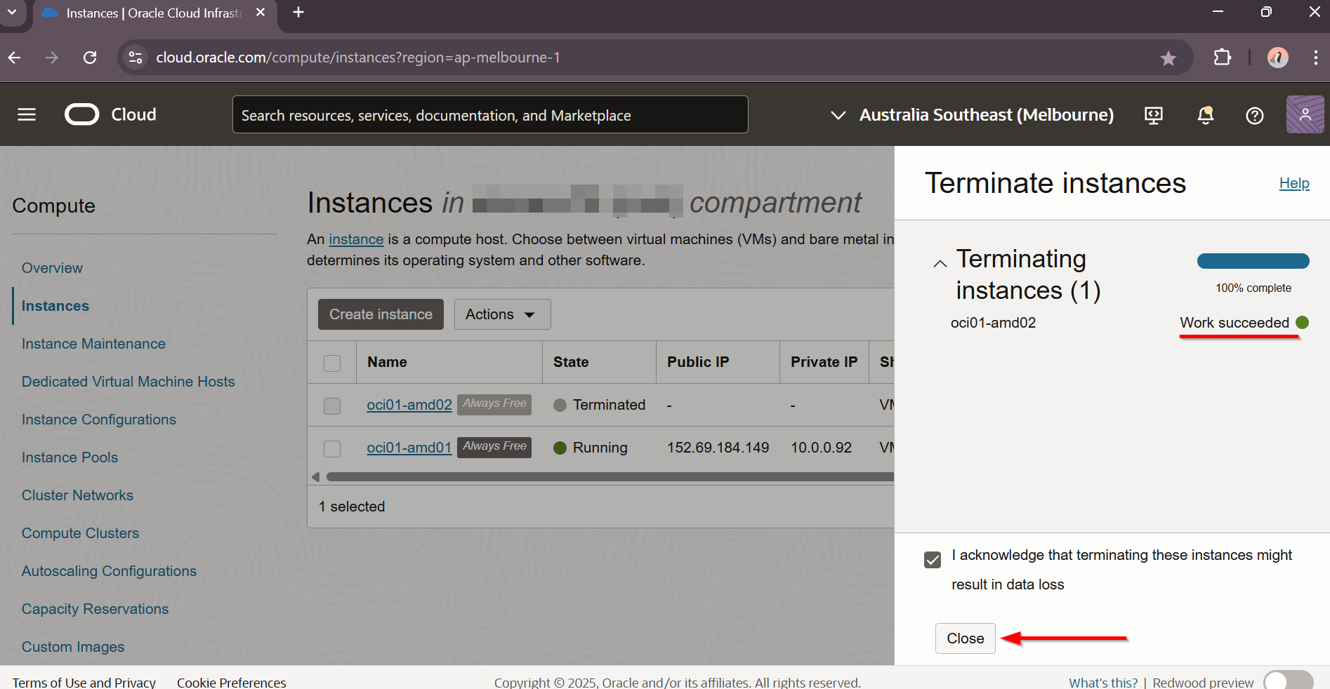 Terminate Oracle Cloud VM